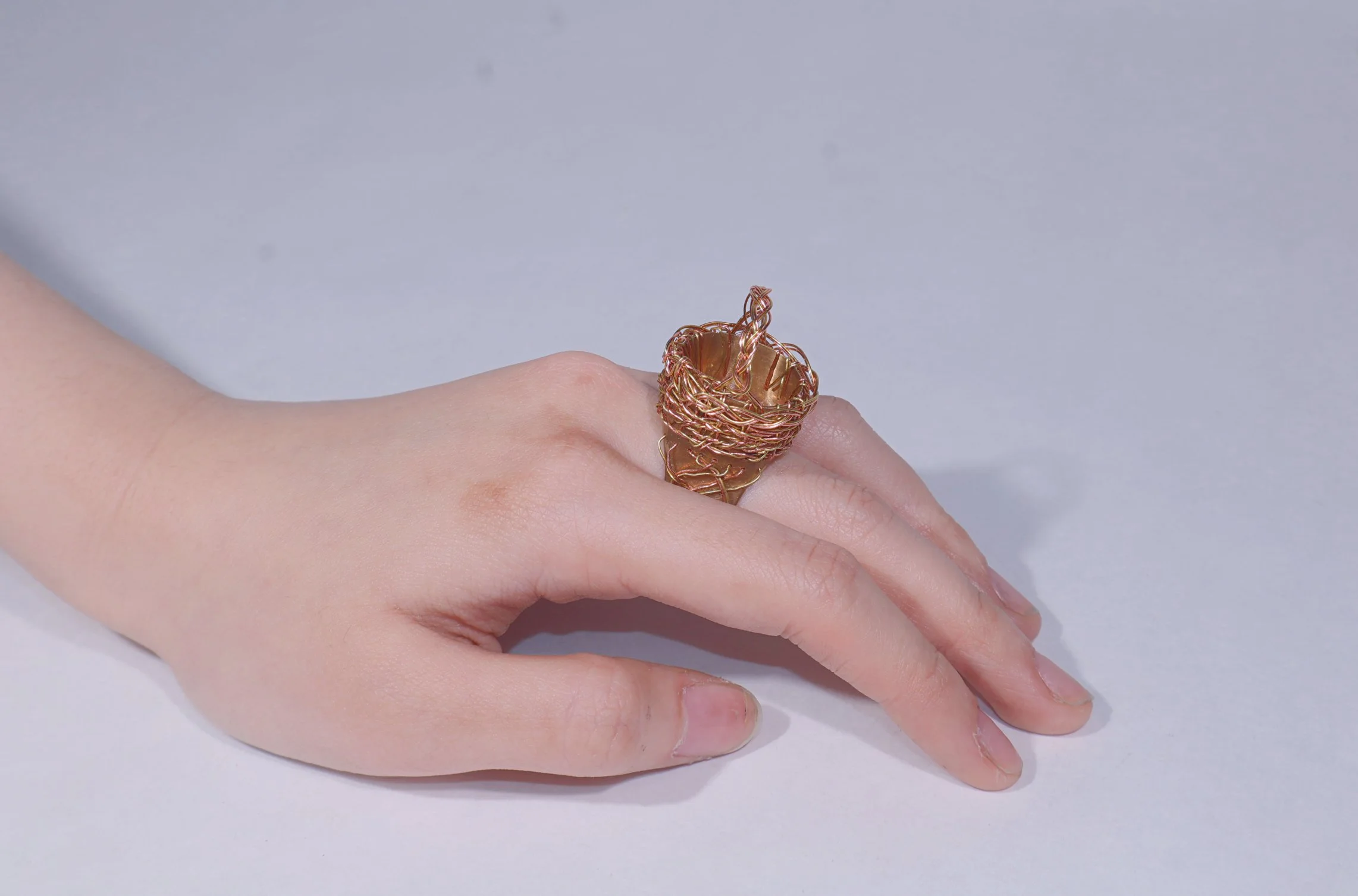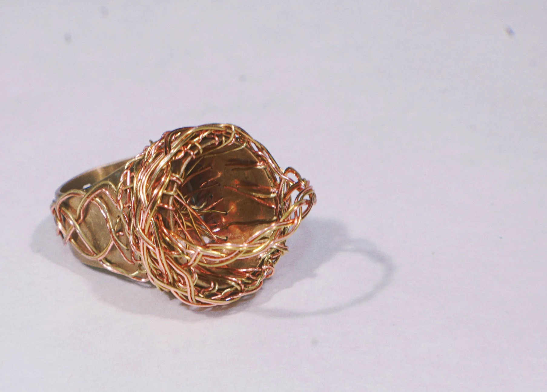 My first attempt at metal wire weaving. I explored the tension between structure and openness through hollowed patterns, integrating textile logic into metalwork.
